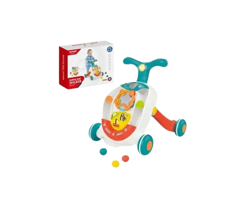 Rolling Ball Walker Early Learning Toy is designed for babies aged 12 months and above to support early walking and active play. Featuring rolling balls and interactive elements it helps develop balance coordination and motor skills while encouraging curiosity and movement. Perfect for indoor play it can be styled as a fun walker and learning companion for growing toddlers.
