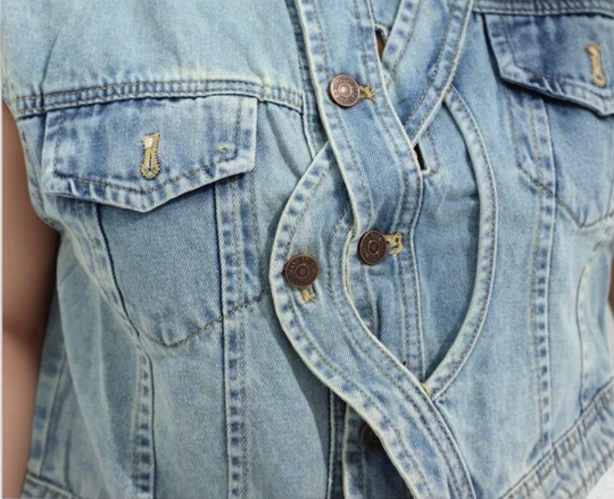 The Backcountry Denim Vest is a light blue denim vest featuring bronze-toned buttons and raw armhole edges for a cool, laid-back vibe. Ideal for layering over T-shirts, blouses, or dresses, it effortlessly elevates casual outfits. Made from denim, fabric care includes machine wash at 30°C, professional dry clean, medium-heat ironing, no bleaching, and do not tumble dry.