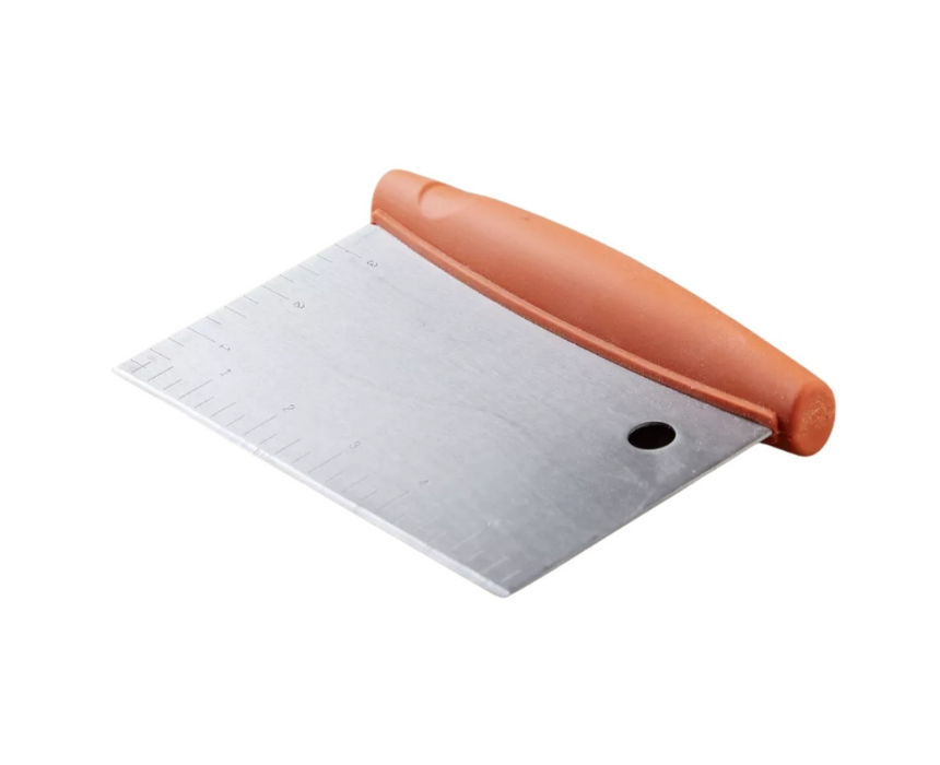 This pastry cutter measures 3.6 x 11.4 x 16 cm and helps ensure precise cuts while rolling dough. Made from stainless steel, it features engraved measurements on the side and a contrast top handle for a steady and comfortable grip. Ideal for baking and pastry preparation.