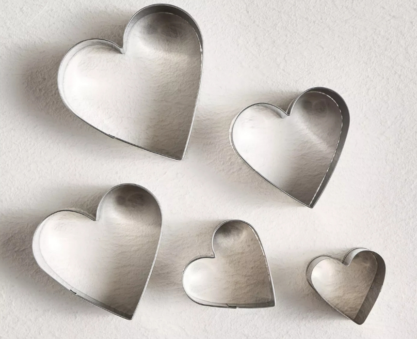 This five piece heart shaped cookie cutter set is crafted from durable stainless steel for precise and clean edges. Ideal for making cookies, biscuits, or fondant decorations, it allows creation of various sizes for any special occasion. Practical and versatile, it enhances baking creativity and delivers charming, professional results.