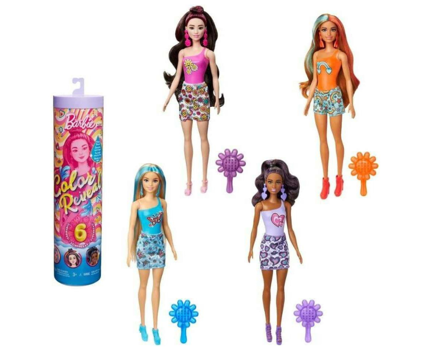 The Barbie Color Reveal Colorful Patterns series delivers a fun, surprise-filled experience with up to six hidden surprises per set. Each doll features long hair with a bright streak, 1960s-inspired patterns, and accessories like a skirt or shorts, shoes, earrings, and a brush. Kids can use warm or cold water to reveal magical color transformations, mix and match designs, and collect the full series for endless creative play.