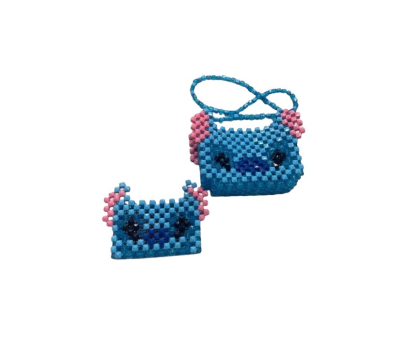 This bundle features a handmade beaded stitch bag and matching wallet in vibrant blue and pink tones. Both pieces showcase intricate beadwork, adding a unique and colorful touch to any outfit. Perfect for casual or festive occasions, the bag and wallet set can be styled together for a coordinated look or used separately to elevate everyday accessories.