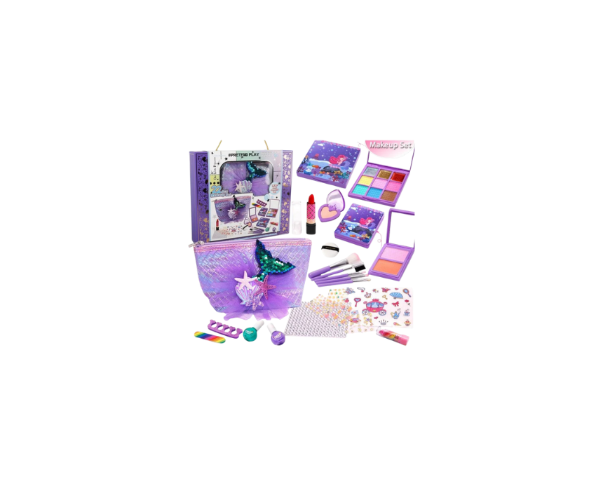 The 22 piece Hand Beauty Art Makeup Set features eyeshadows, lipsticks, blushes, nail polishes, brushes, and a portable cosmetic bag designed for pretend play. Made with non toxic, washable materials, it supports creativity, fine motor skills, and imaginative role play for children ages 5 and up, and can be lightly applied for dress up fun before packing everything neatly back into the bag.