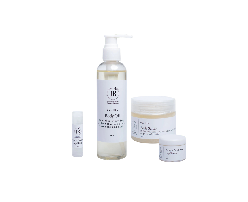 Beauty Basics offers a curated set of essentials featuring nourishing body oil, rejuvenating body scrub, hydrating lip balm, and smoothing lip scrub to keep skin soft and radiant from head to toe. This versatile collection suits daily self-care routines and pairs effortlessly with any beauty regimen for polished, glowing skin.