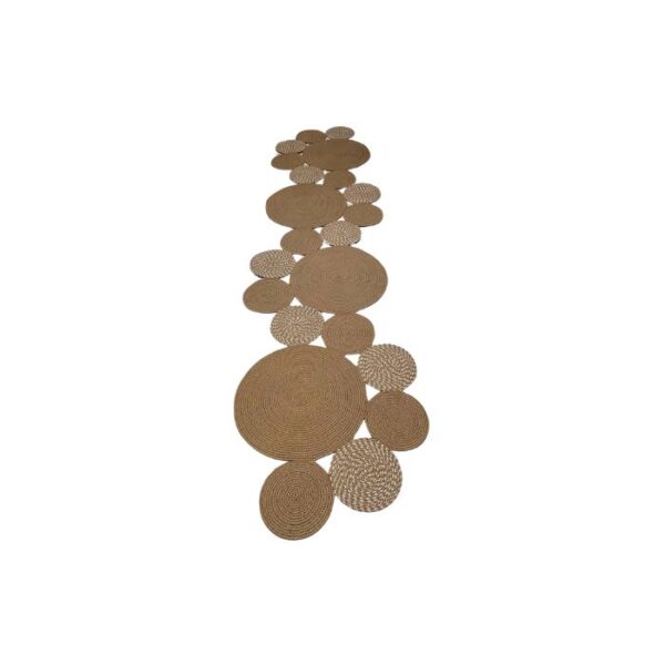 The Beige Oval Jute Carpet features a natural beige tone with a subtle white line design, available in two sizes: 60 x 120 cm and 80 x 150 cm. Made in Turkey from durable jute, this carpet adds a warm, earthy touch to any indoor space. Its versatile oval shape and neutral colors make it ideal for living rooms, bedrooms, or cozy corners, blending effortlessly with various decor styles.