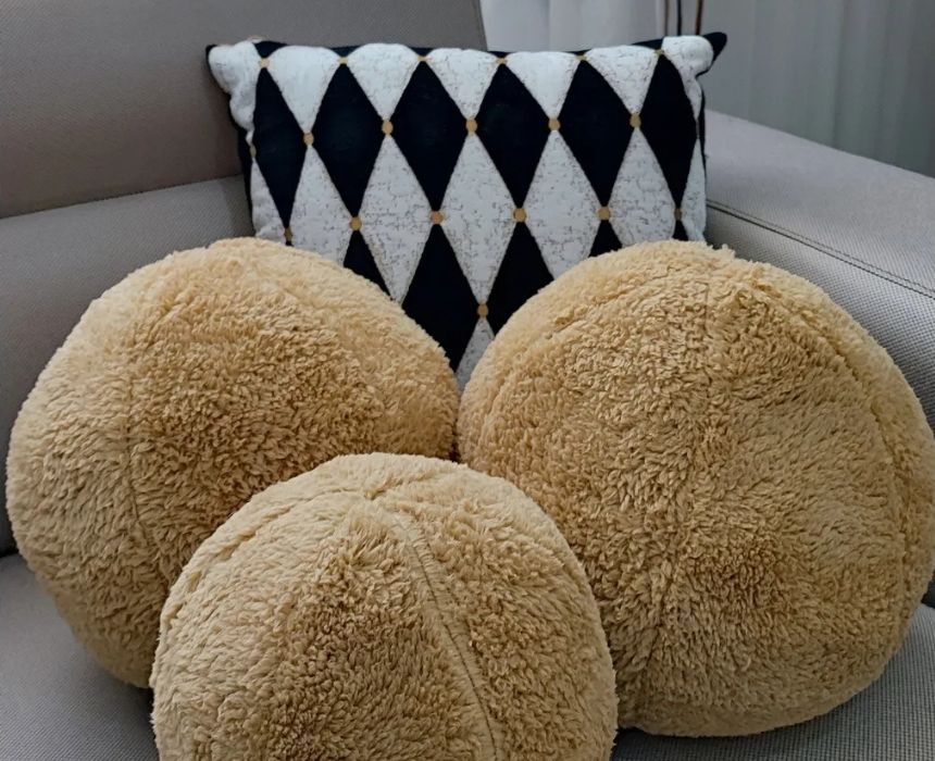 The Beige Round Pillows set includes two large filled cushions with a diameter of 42cm and one small cushion measuring 25cm. Made from breathable and soft Wersoft fabric, these pillows offer comfort and style for any living space. Perfect for adding a cozy, neutral touch to sofas or beds, they blend easily with various decor styles. Crafted in Turkey, they combine quality with elegance for everyday relaxation.