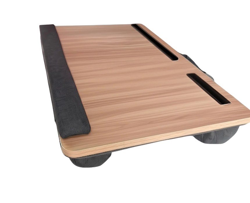 The Beige Wood Lap Desk combines comfort and practicality with a cushioned base, non-slip Oxford fabric surface, and built-in slots for tablets and phones. Made from sturdy 9mm multilayer board and measuring 60 × 40 × 26 cm, it is lightweight at 2.05 kg, making it perfect for use on beds, sofas, or in cars. Its elegant beige finish and ergonomic design provide a stylish, functional workspace for reading, working, or studying anywhere.
