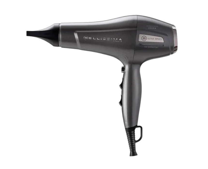 The Bellissima Ultraspeed professional hair dryer delivers ultra-fast drying with enhanced airflow up to 140 km/h, while ions and ceramic technology keep hair smooth, hydrated, and frizz-free. With a powerful 2200 W AC motor, 2 speeds, 3 temperatures, cold-shot function, and two styling attachments, it adapts to all hair types for precise or curl-defining results. Its elegant Italian design comes with a beauty bag and cable clips for convenient storage at home or on the go.