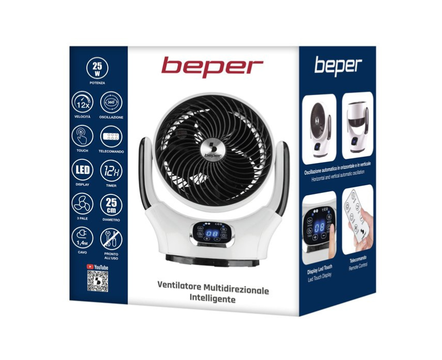 <p>This digital table fan features a robust ABS structure with an LED display and intuitive touch control panel for precise comfort. It offers 12 selectable speeds, 3 operating modes, a programmable 12 hour timer, automatic horizontal and vertical oscillation, and a remote control, delivering efficient 25W air circulation for desks, bedrooms, or offices with a sleek modern style.</p>