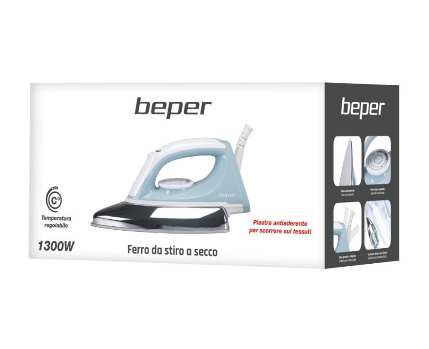 <p>This practical and handy dry iron is ideal for delicate fabrics such as silk that could be damaged by steam. It features a non stick plate and adjustable thermostat to select the right temperature for each garment, reaching the desired heat quickly for efficient ironing. The cable is swivel and anti kink for ease of use. The iron measures 24x11x16 cm and weighs 1.2 kg.</p>