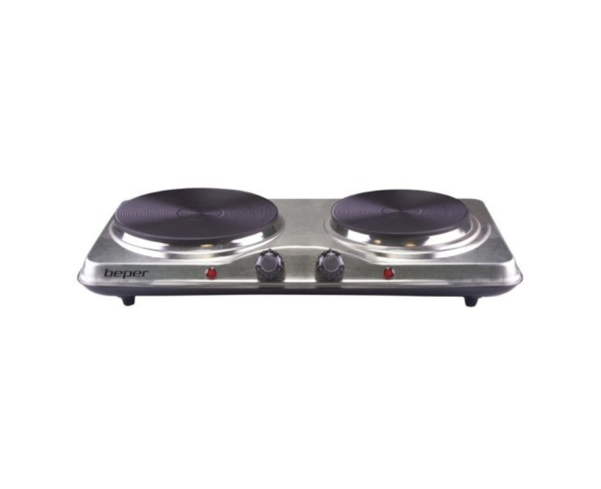 <p>This Beper electric hot plate features a durable stainless steel body with two cast iron plates measuring 18.5 cm and 15.5 cm, designed for efficient and versatile cooking. It is equipped with a double thermostat to independently adjust five temperature levels for each plate, along with operating warning lights, overheating protection and non slip feet for safe and stable use. With a combined power of 2500 W, it is ideal for everyday cooking, small kitchens or as an extra cooking surface.</p>