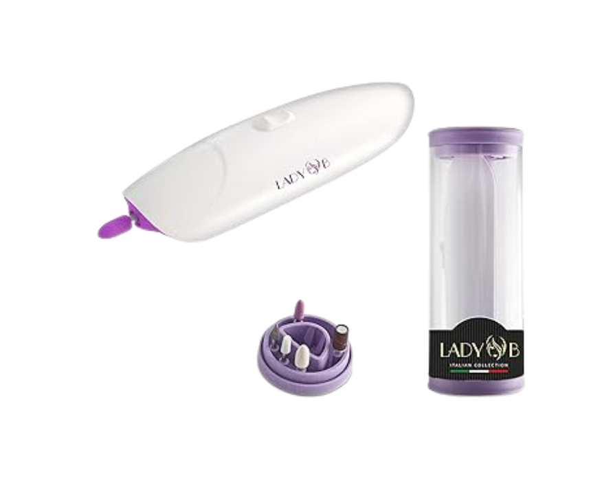 <p>This manicure and pedicure set comes in convenient travel packaging and features a silent motor with a functional LED light for precise use. It includes five accessories: nail polisher, nail buffer, cuticle remover, and two shaping tools, all designed to create perfectly groomed nails. The ergonomic handle ensures a comfortable grip, and the set operates with 2 AAA batteries for easy portability.</p>