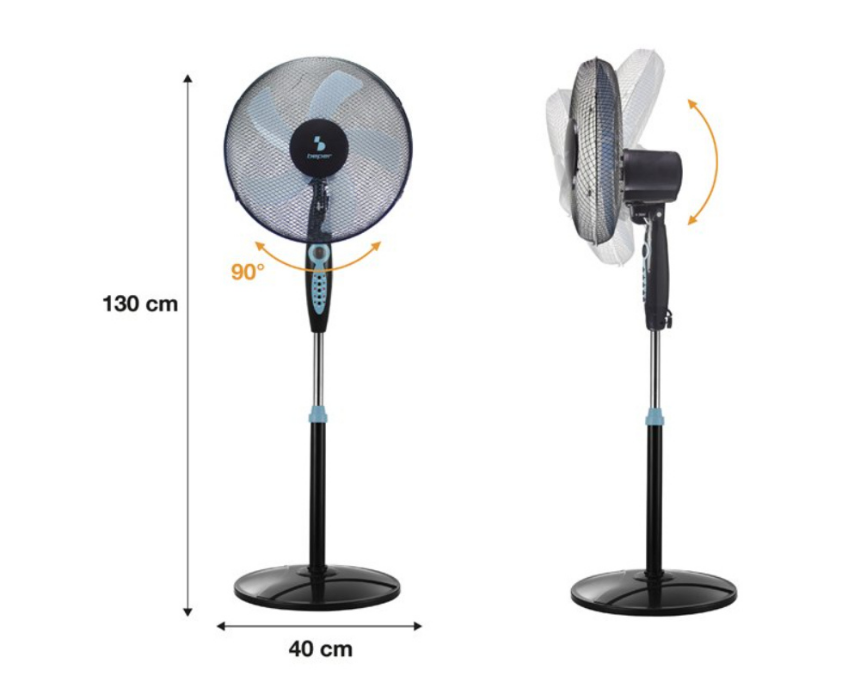<p>This pedestal fan features three adjustable speeds and an automatic horizontal oscillating function for even airflow. It includes a programmable timer up to 7.5 hours, three ventilation modes normal breeze and night, and can be controlled with the included remote. The fan has a round base for stability, a 45 cm metal grill, five blades, a height of 130 cm, operates at 40 W 220 to 240 V, and weighs 3.6 kg.</p>