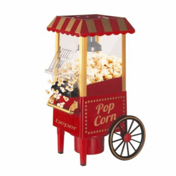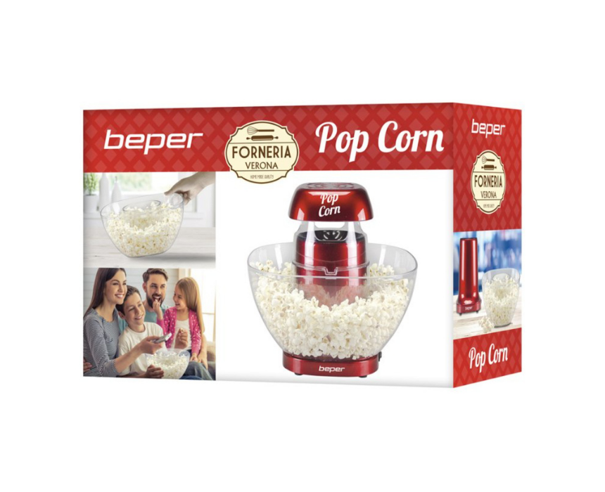 <p>This popcorn machine is perfect for sharing moments with family and friends and prepares popcorn in less than three minutes using hot air without adding fat. The large integrated popcorn bowl is easily removable for comfortable serving for everyone. Made of ABS with 1200 W power, it measures 28.5×28.5×27 cm, package size 45x71x31 cm, and weighs 7.7 kg.</p>