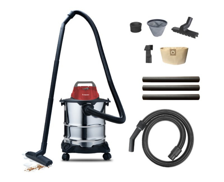 <p>This wet and dry vacuum cleaner features a 20L capacity and a powerful 1000W motor capable of picking up fine dust coarse dirt and liquids with strong suction above 17Kpa. It includes a blower function four swivel wheels a 5M cable for easy mobility and a base with compartments to store all accessories. Supplied with a sponge filter fabric filter floor brush 2 in 1 crevice nozzle and paper bag it is made of durable steel 401 for reliable performance.</p>