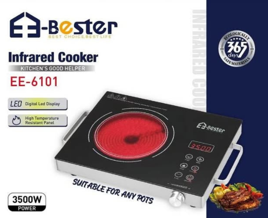 The Bester Infrared Cooker is a high-powered, versatile cooking appliance featuring 3500W of power for fast and efficient heating. Equipped with an LED digital display and a high-temperature resistant panel, it is compatible with any type of pot and ensures precise, safe, and convenient cooking. Ideal for home kitchens, it combines performance, durability, and ease of use.