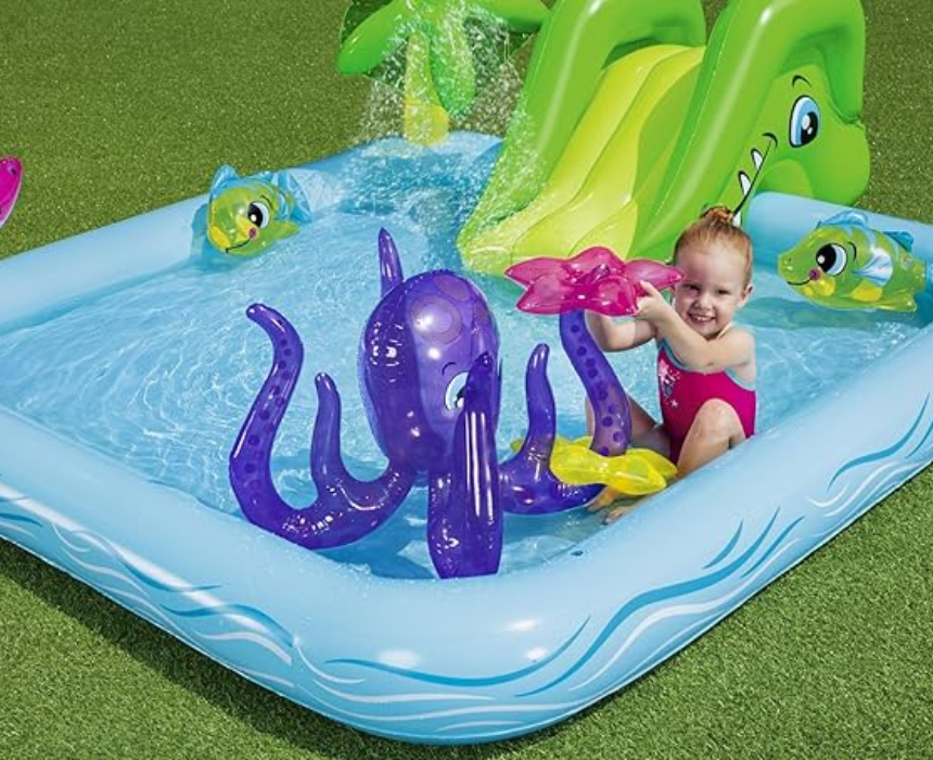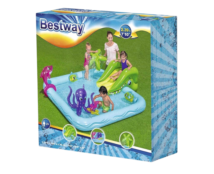 Bestway Fantastic Aquarium play center offers a colorful and engaging water play experience with a fun aquatic theme that captures children’s imagination. Designed for outdoor enjoyment, it provides space for splashing, sliding, and interactive play during warm days. Ideal for backyard use, it encourages active movement and social fun while creating a refreshing play environment.