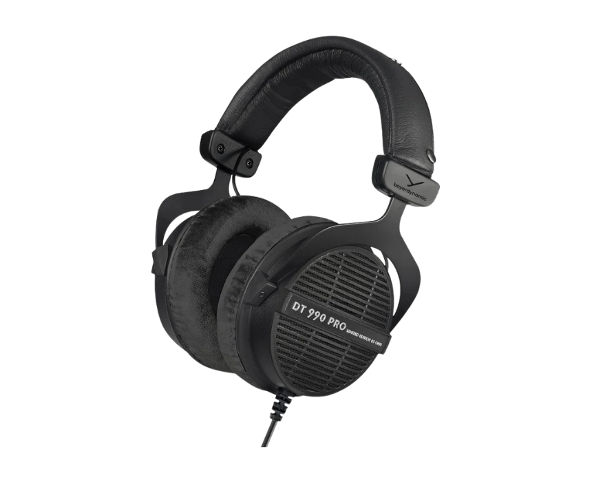The Beyerdynamic DT 990 Pro 250 Ohms are open back studio headphones designed for detailed and spacious sound, making them ideal for mixing, mastering, and critical listening. They deliver a wide stereo image with clear highs and rich bass, providing an accurate and immersive audio experience for professional and personal use. Built for comfort with soft velour ear pads and durable construction, they are perfect for long studio sessions.