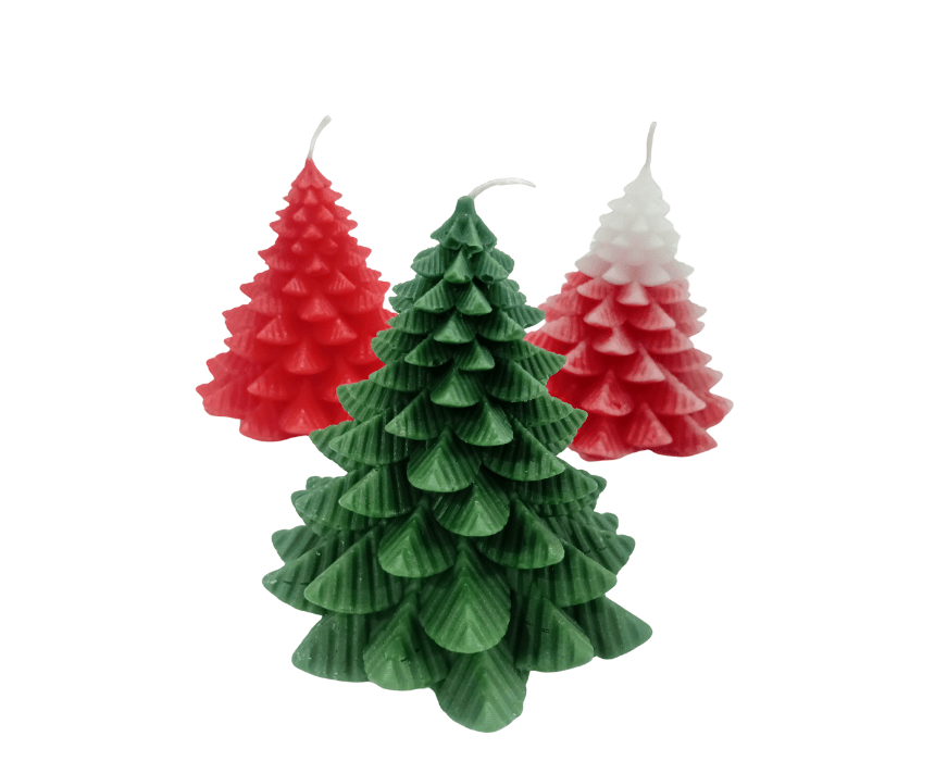 Natural beeswax candle shaped like a big tree. Handmade with care, available in red, green, and white, and customizable upon request. Perfect for festive décor or as a thoughtful gift.