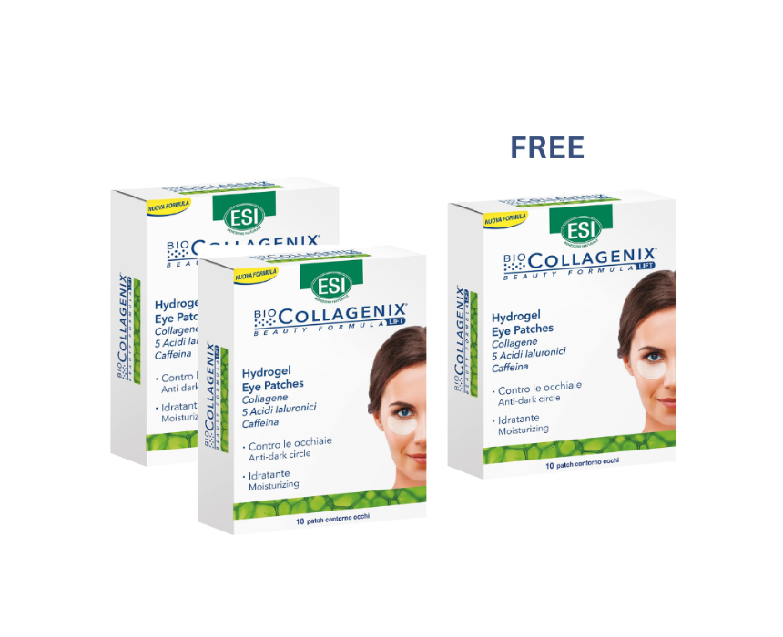 Bio Collagenix Eye Patches by ESI are hydrogel patches designed to refresh and rejuvenate the delicate under-eye area. Infused with hydrolyzed marine collagen, caffeine, and multiple forms of hyaluronic acid, they deliver intense hydration while improving elasticity. These patches visibly reduce puffiness, dark circles, and fine lines, leaving the eye contour smoother and more radiant. Thanks to advanced hydrogel technology, active ingredients are optimally absorbed, making them a quick and effective treatment for tired eyes and busy lifestyles.