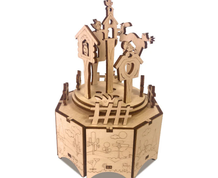 The Bird Paradise Rotational Music Box 3D Mechanical Wooden Puzzle is a precision laser cut DIY model that assembles into a rotating bird themed music box with intricate gears and smooth melodic movement, crafted from eco friendly wood and built without glue. Suitable for teens and adults, it offers a relaxing and engaging build and styles beautifully as a decorative accent on desks, shelves, or nature inspired décor.