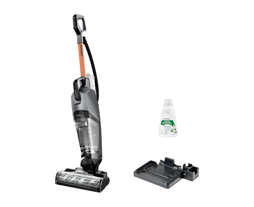 The BISSELL CrossWave HydroSteam-3527E is a 3-in-1 floor cleaner that vacuums, washes, and steams in a single pass. It works on sealed hard floors and area rugs, using hot steam to sanitize and loosen dirt while the brush roll scrubs and picks up debris. Lightweight and easy to use, it is ideal for efficient cleaning in busy households and homes with pets.