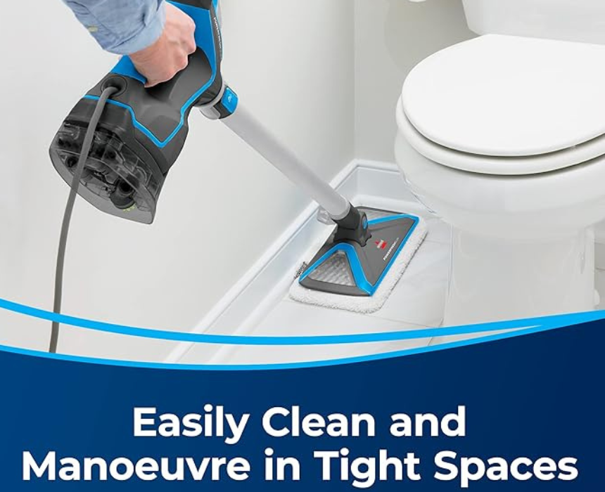 The Bissell PowerFresh SlimSteam cleans and sanitizes sealed hard floors using only water, eliminating up to 99.9% of germs with its microfiber pads. Its on-demand steam trigger, swivel steering and attachable tool kit offer precise, easy cleaning in tight spaces on hardwood, ceramic, linoleum, granite and marble. Ideal for everyday floor care; adjust steam levels based on surface needs.