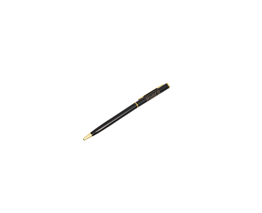 The Black and Gold Pen is a luxurious writing instrument that features a sleek onyx finish and brilliant gold accents for a truly professional appearance. This high quality pen provides a superior writing experience with smooth black ink and offers custom engraving and an optional gift box for a personalized touch. To style this elegant accessory, clip it onto a black leather notebook or place it in a matching gold desk organizer to create a sophisticated and authoritative aesthetic that enhances any office or boardroom setting.