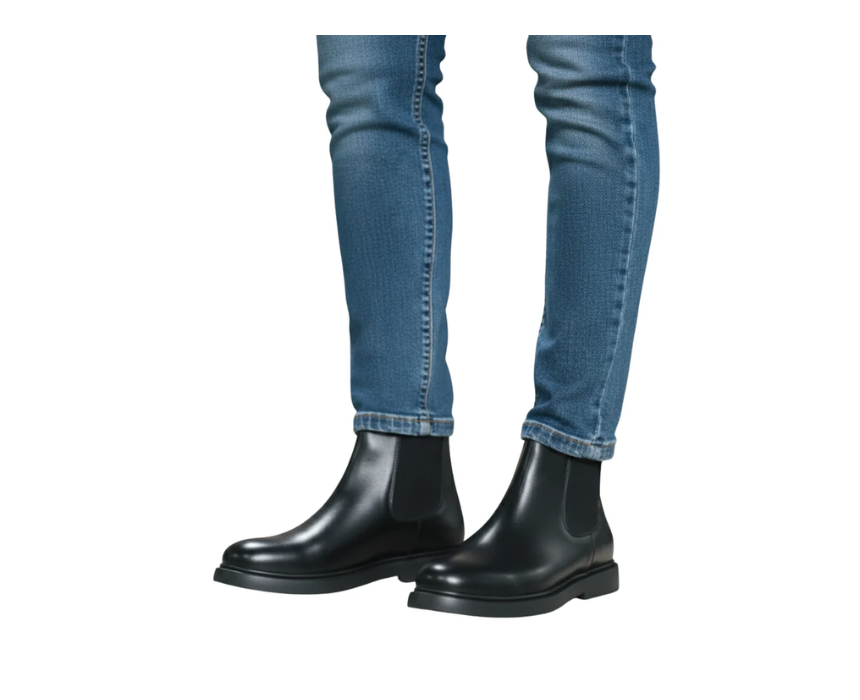 Black Ankle Boot With Elastic Side offers a sleek ankle-length profile with a classic black finish and elastic side panels for easy slip-on comfort. Its versatile design works well for both formal and casual wear. Style it with jeans, chinos, or tailored trousers for a sharp, modern look.