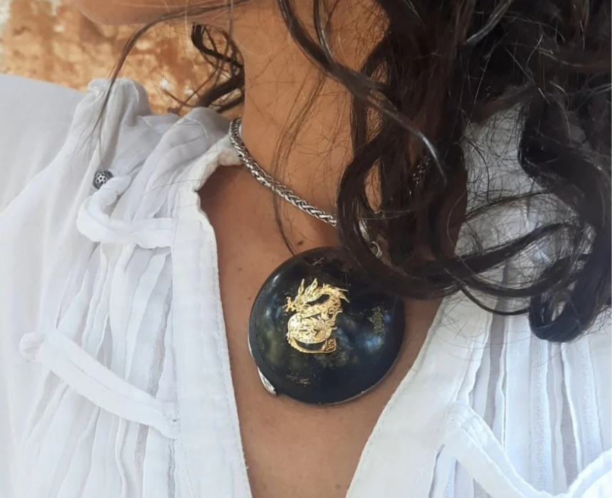 This handcrafted double-sided orgonite pendant unites the fierce Dragon and intuitive Wolf energies to enhance strength, protection, and balance. Built with advanced EMF protection properties, it helps transmute negative frequencies while harmonizing the biofield. Wear it close to your heart for grounding energy or layer it with other necklaces for a bold spiritual look.