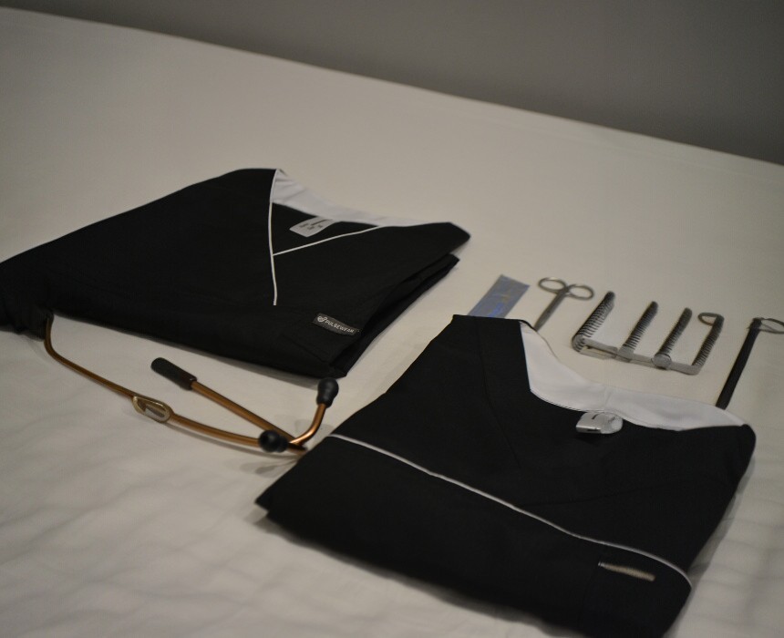 Pulsewear Female Scrubs in Black offer a professional and versatile look for medical professionals. Made from 100% premium microfiber, this set is soft, lightweight, and wrinkle-resistant. The fabric features antibacterial and anti-odor technology to keep you fresh throughout your shift. We recommend choosing one size larger to ensure optimal comfort and ease of movement during daily clinical tasks. Available in sizes XL and XXL. Set includes shirt and pants.