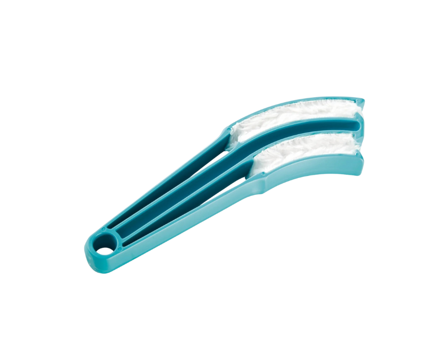 The Leifheit Jalousetta Venetian Blind Cleaner makes cleaning blinds fast and effortless by clasping two blinds at once and wiping four surfaces simultaneously. Its microfibre cover traps dust, dirt, and grease without scratching, preventing particles from resettling, and features a convenient hanging loop for easy storage. Hand washable and reusable, it is ideal for maintaining dust-free blinds and reducing allergens in any room.