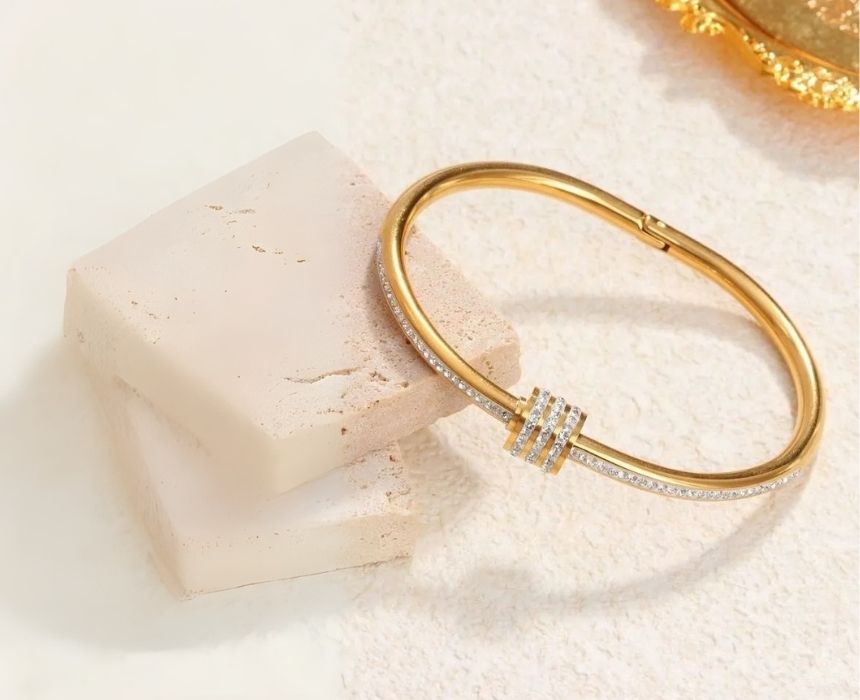 The Bling Bangle is crafted from shiny, durable stainless steel, offering a sleek and polished look that lasts. Its versatile design makes it perfect for stacking with other bracelets or wearing alone as a subtle statement piece. Ideal for both casual and formal occasions, this bangle adds a touch of effortless elegance to any outfit.