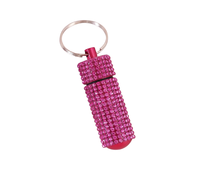 The Bling Rhinestone Pill Case Keychain is a compact, waterproof storage solution adorned with sparkling rhinestones. Lightweight and portable, it securely holds pills, supplements, jewelry, or other small essentials, making it perfect for travel, outdoor use, or everyday carry. Stylish and practical, it adds a touch of glamour while keeping your items safe.