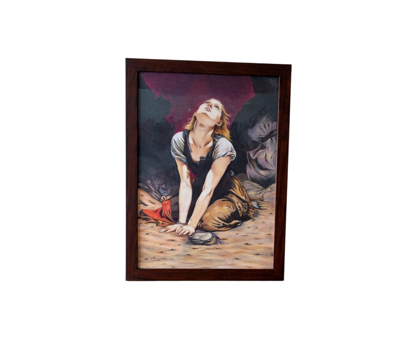 This portrait features a blonde woman rendered with wooden colored pencils by Elie Nehra. Measuring 35 cm by 40 cm, the artwork highlights delicate shading and expressive character. It pairs well with minimalist or modern interior decor as a refined wall accent.