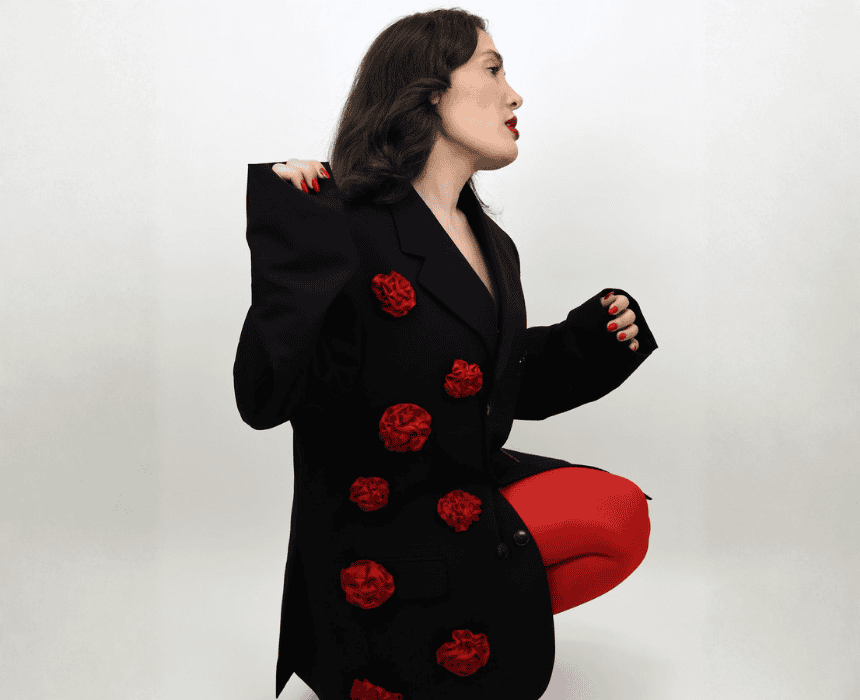 Blossom Blazer Dress is a bold yet elegant piece from the Valentine Collection. This black oversized blazer is upcycled into a chic dress, featuring handcrafted floral accents on one side and striking red strass detailing on the other. Finished with buttons sewn using red thread, it’s a unique fusion of craftsmanship, femininity, and statement style.