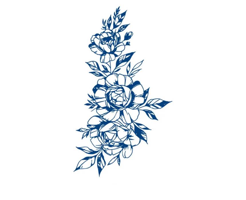This Blossoming Flowers Jagua Tattoo showcases a delicate floral composition in a large 11 x 18 cm size, perfect for creating an elegant temporary body art look. Made from natural jagua, it develops into a deep blue black tone on the skin and lasts for several days. Ideal for styling on the arm, back, or leg, it adds a soft and graceful touch to everyday wear or special occasions.
