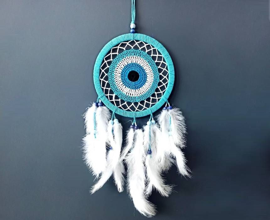 The Blue Circle Dream Catcher adds a serene, bohemian touch to any room with its calming color and handcrafted design. Measuring 21cm in diameter and 68cm long, it’s perfect for hanging above beds, in living spaces, or near windows to gently move with the breeze. Made in Turkey, it brings both charm and tradition to modern décor.