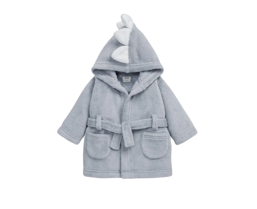 This blue dinosaur dressing gown for boys adds fun and warmth to bedtime with playful 3D dinosaur spikes and a cosy hooded design. Featuring curved front patch pockets and a functional belt fastening, it’s perfect for keeping little ones snug after bath time or before bed. Style it over pyjamas or sleepsuits for a comfy, roar-some night routine.