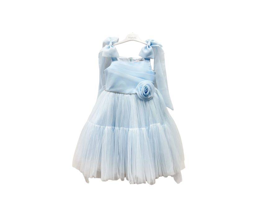 The Bluebell Wishes Celebration Dress features a delicate blue hue crafted from high-grade chiffon with a soft cotton lining for comfort. Perfect for special occasions, this dress offers an elegant and airy feel, ideal for twirling at parties or festive events. Pair it with simple sandals or ballet flats to complete a charming and graceful look for young girls.