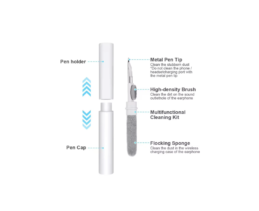 The 3-in-1 Earbuds Cleaning Pen is the ultimate tool for keeping your gadgets spotless. Featuring a precision metal tip, a microfiber brush, and a 360° flocking sponge, it effortlessly removes dirt, dust, and earwax from earbuds, speaker grills, and charging ports. Its compact, pen-like design makes it easy to carry, ensuring your Bluetooth earbuds, smartphones, and other small electronics stay in top condition wherever you go. Keep your devices clean, fully functional, and looking brand new!