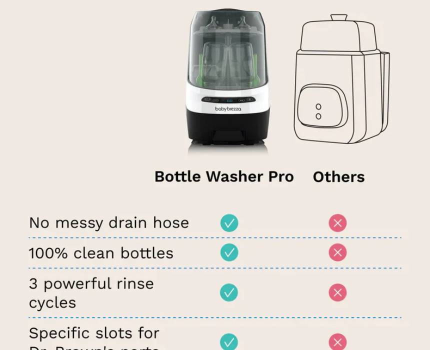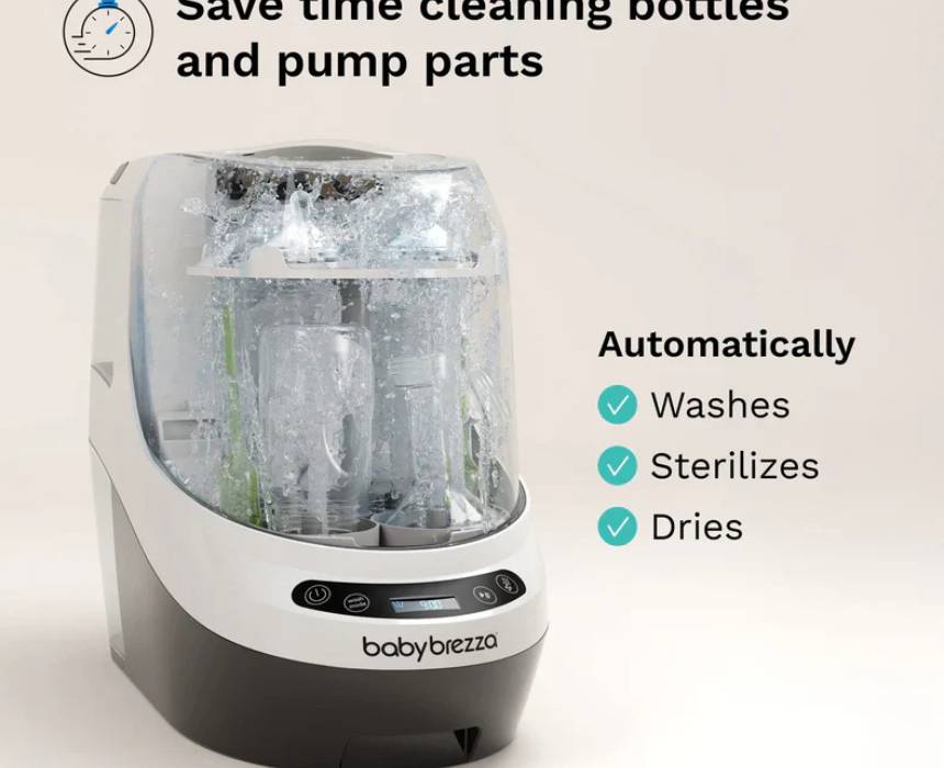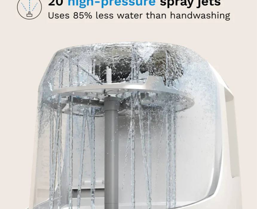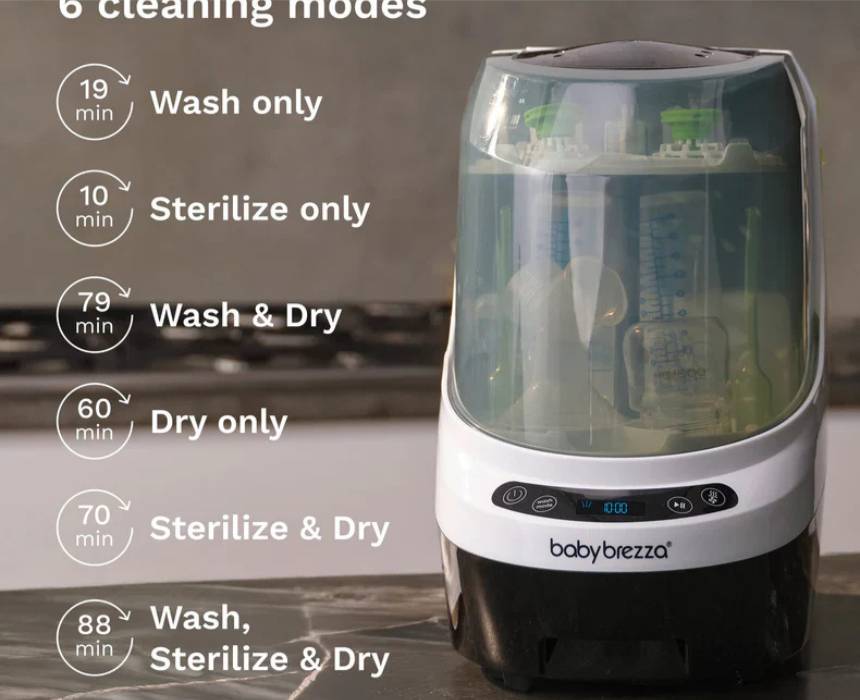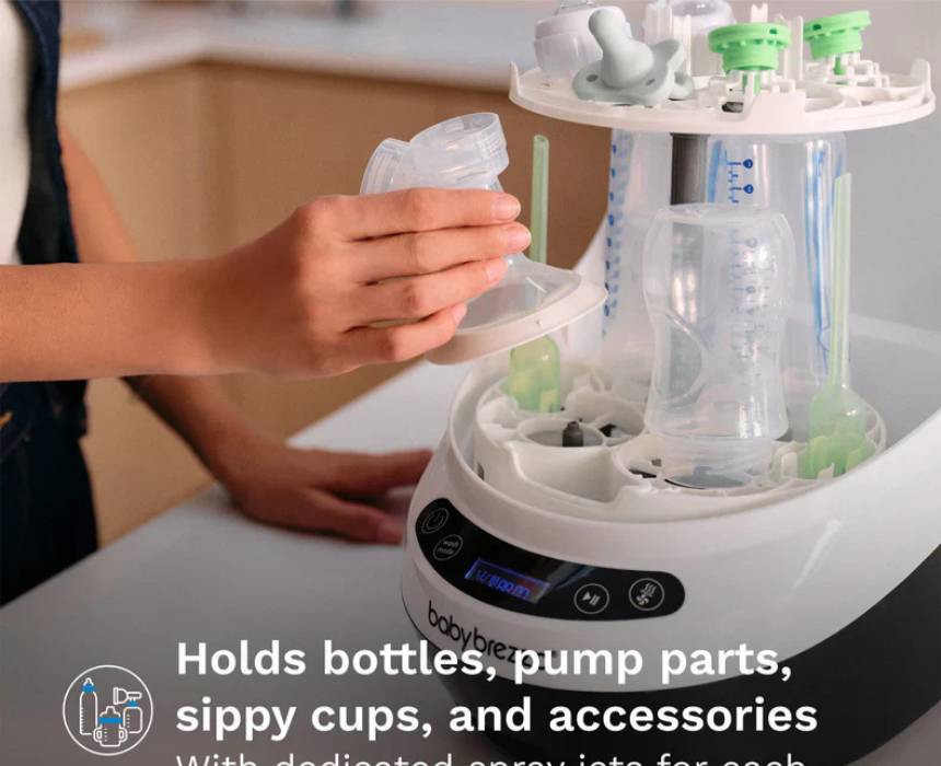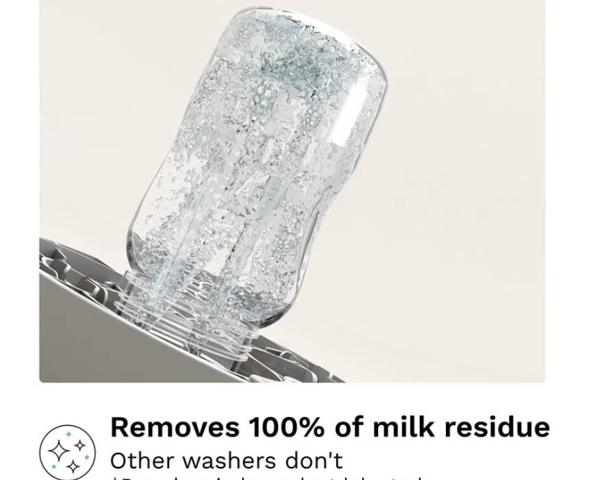 This all-in-one bottle washer automatically washes, sterilizes, and dries bottles, pump parts, sippy cups, and accessories from most brands, removing 100% of milk residue in a 19-minute cycle with 20 high-pressure spray jets and steam that eliminates 99% of germs. HEPA-filtered drying keeps items sterile for up to 72 hours, while removable water tanks allow flexible use without sink hookups. With 6 cleaning modes and universal capacity, it delivers a more efficient, eco-friendly clean using less water than hand washing.