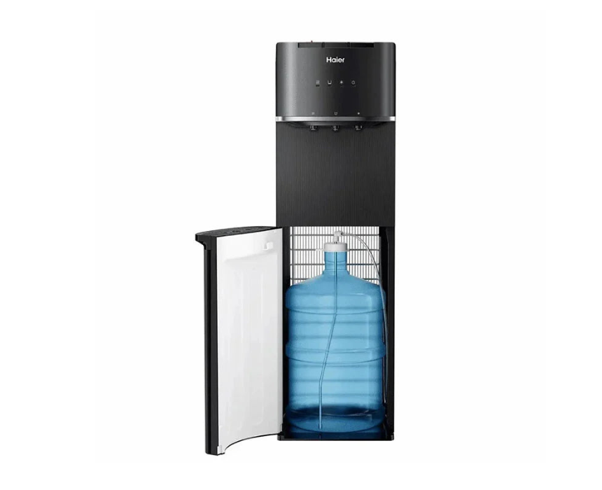This bottom-loading water dispenser in black features a 3.5 L cold tank and 1.1 L hot tank, with 420 W heating and 88 W cooling power. Equipped with UV sterilization, child safety lock, night lamp, LED indicator, and a 3-button control system, it ensures safe, convenient, and hygienic hydration. Its sleek 310×370×1040 mm design fits seamlessly into any home or office space.