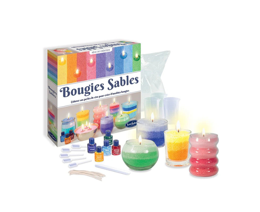Bougies Sables is a decorative candle product designed to create a warm and relaxing atmosphere in any living space. The sand style candle material can be poured into a container and paired with a wick to form a customizable candle display, allowing users to style unique arrangements that match their home decor. It is ideal for enhancing tables, shelves, or special occasions with a soft ambient glow.
