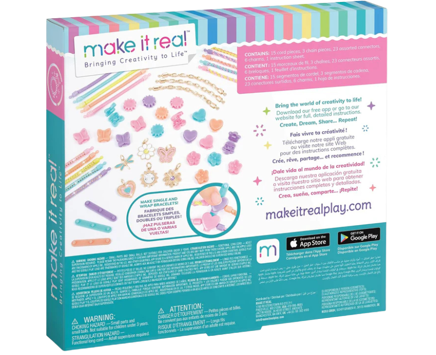 This versatile bracelet kit lets kids design single or layered bracelets, wrap styles, or even necklaces by combining chain and cord sections with decorative connectors. With 6 personalized charms to add flair and endless mix-and-match options, it offers customizable accessories that can be styled to suit any outfit, encouraging creativity and self-expression.