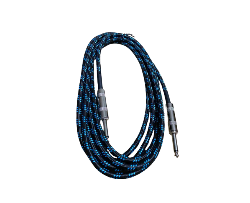 This 10-meter braided jack cable features a durable, tangle-resistant design with metal connectors for secure, noise-free connections. Ideal for electric guitars, basses, and other instruments, it delivers reliable performance for practice, recording, or live use.