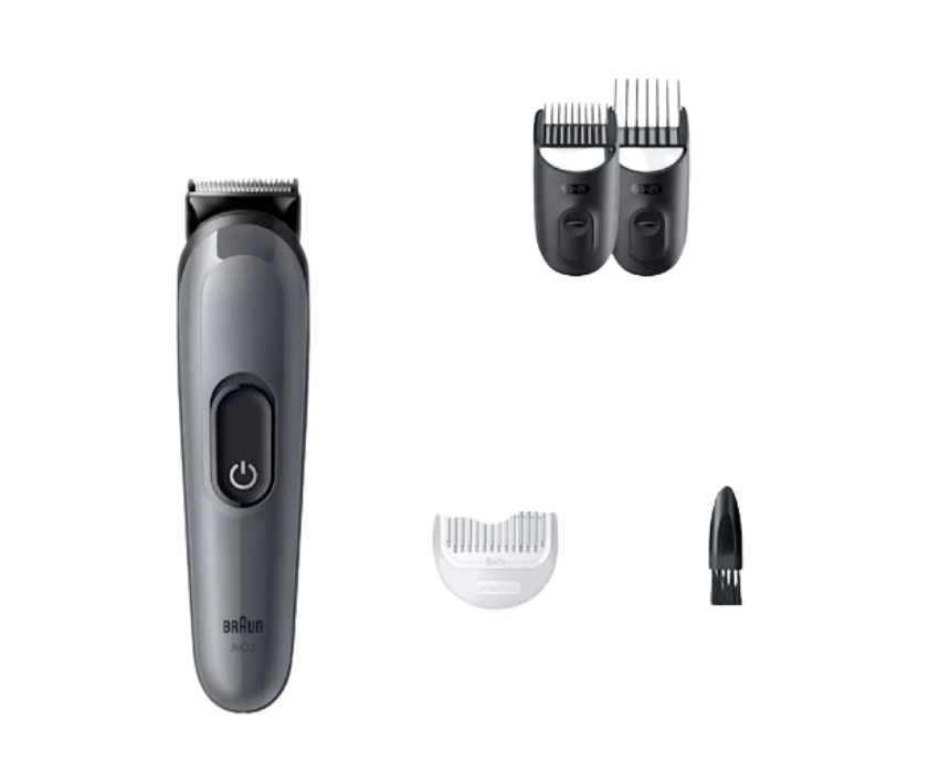 The Braun All-in-One Trimmer Series 3 AIO3500 offers versatile grooming for beard, hair, and body with precise attachments and durable blades. Its compact and ergonomic design ensures comfortable handling and a sleek, modern look in any bathroom. Ideal for daily use, it delivers accurate trimming, detailing, and shaping for a clean, well-groomed appearance.