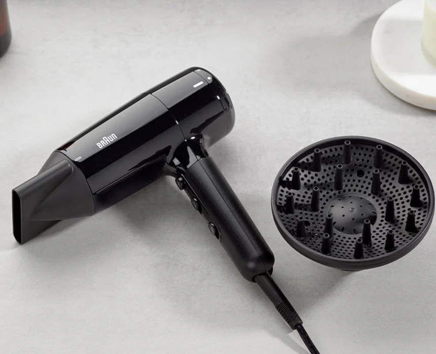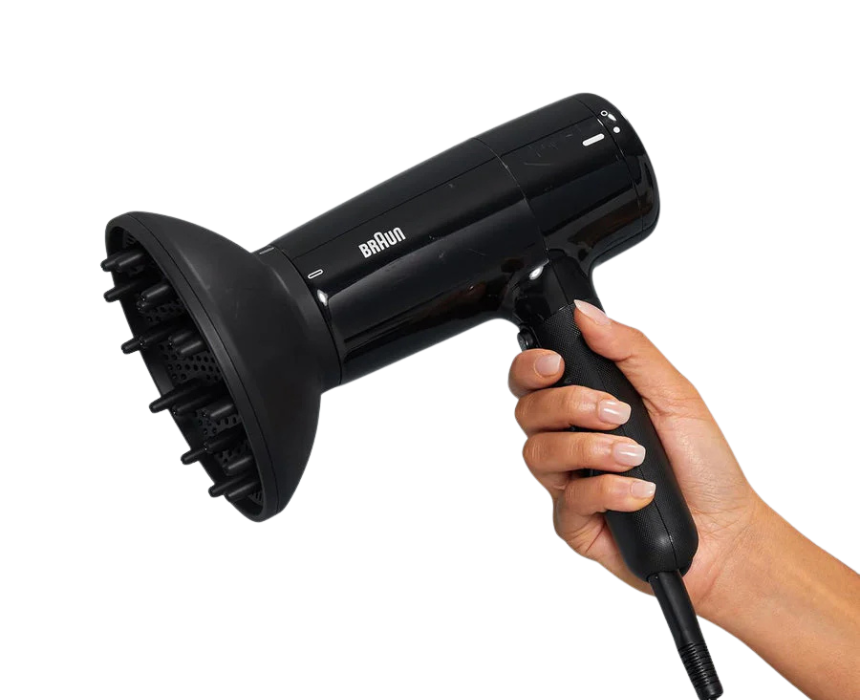 The Braun BRHD225SDE DC Hair Dryer in black delivers 2200W of powerful airflow and comes with a diffuser for enhanced styling and volume. Its lightweight design and multiple heat and speed settings allow precise control for smooth, sleek looks or bouncy, textured hair, making it ideal for everyday use at home or professional styling.