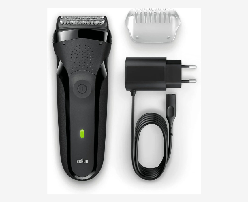 The Braun Shaver 300 Black offers a smooth and comfortable shave with precision-engineered blades and a sleek ergonomic design for easy handling. Its compact and stylish black finish makes it ideal for everyday grooming at home or on the go. The shaver delivers reliable performance and a clean, well-groomed look, complementing any modern bathroom setup.