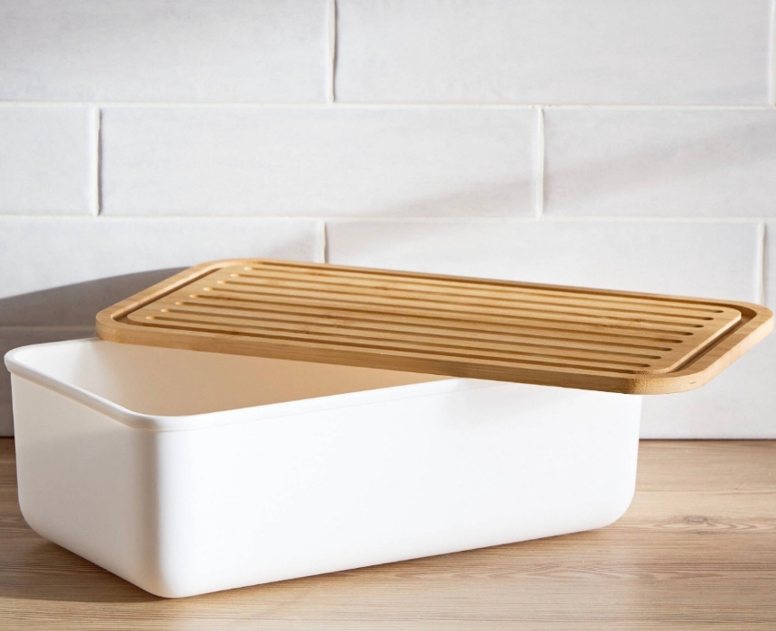 Store your freshly baked bread in this practical and stylish bread bin. Crafted from quality materials with a well fitted lid, it helps keep bread fresh for longer and is suitable for everyday use. The bamboo lid doubles as a cutting board, adding extra functionality to your kitchen routine.